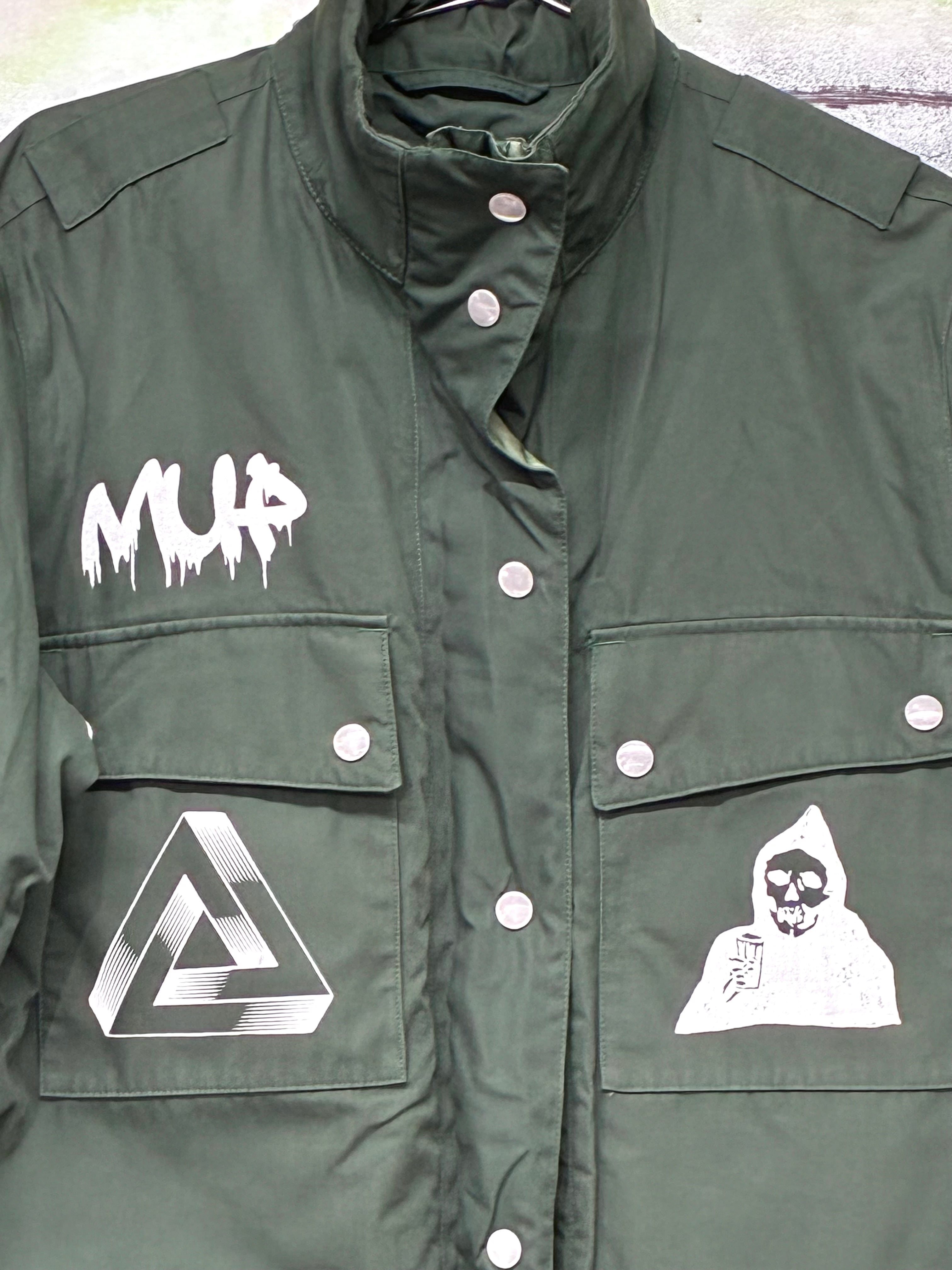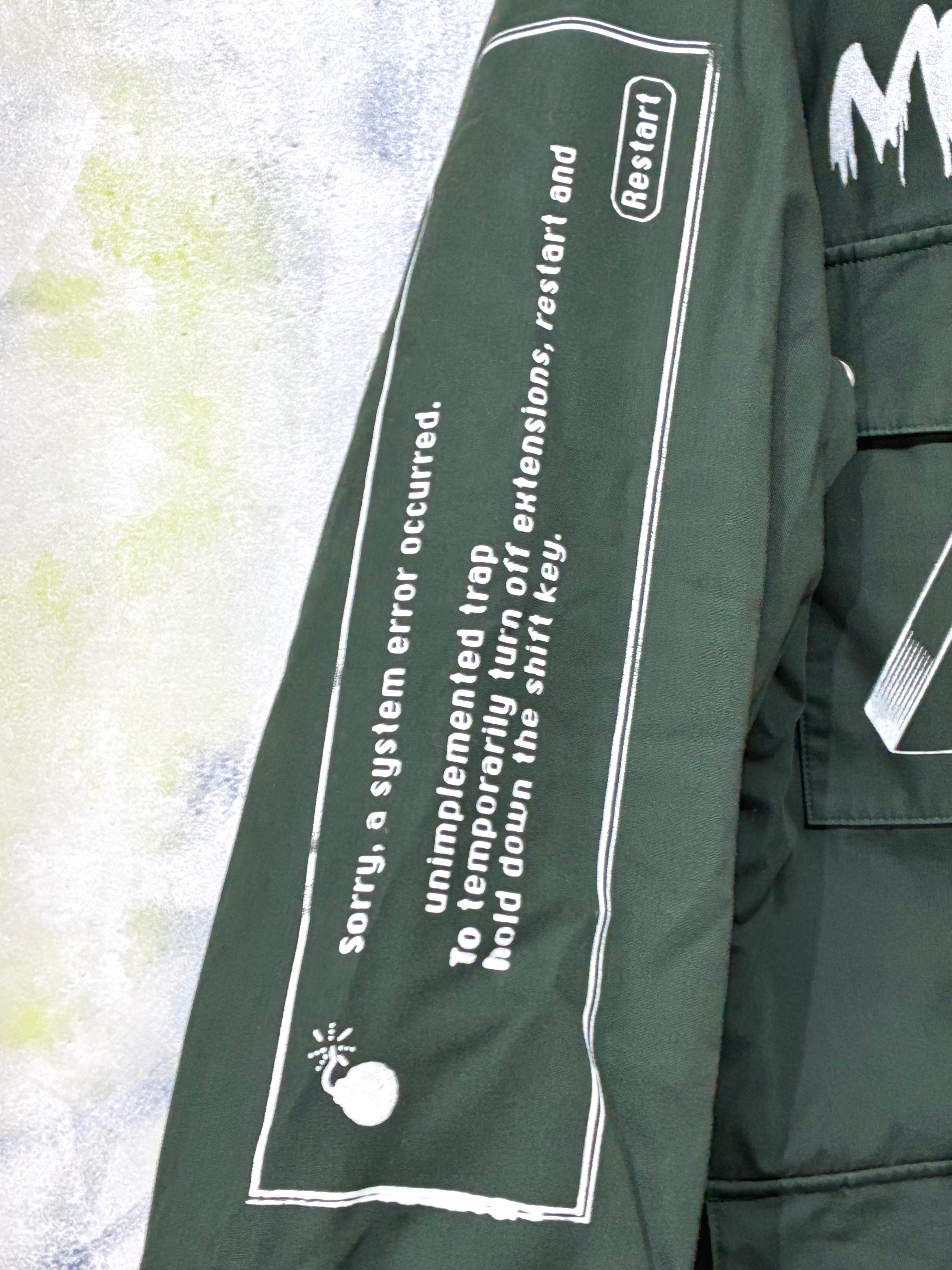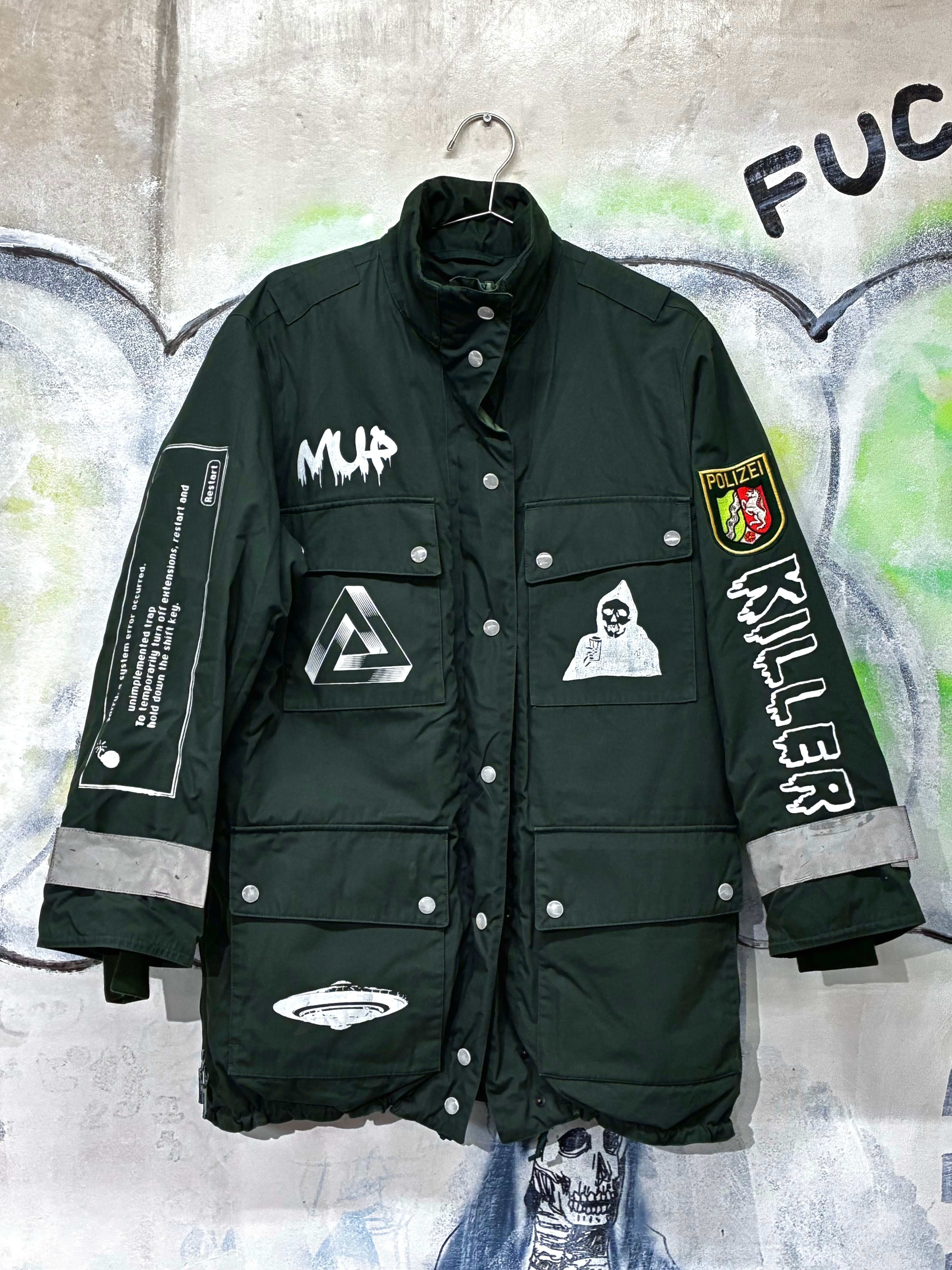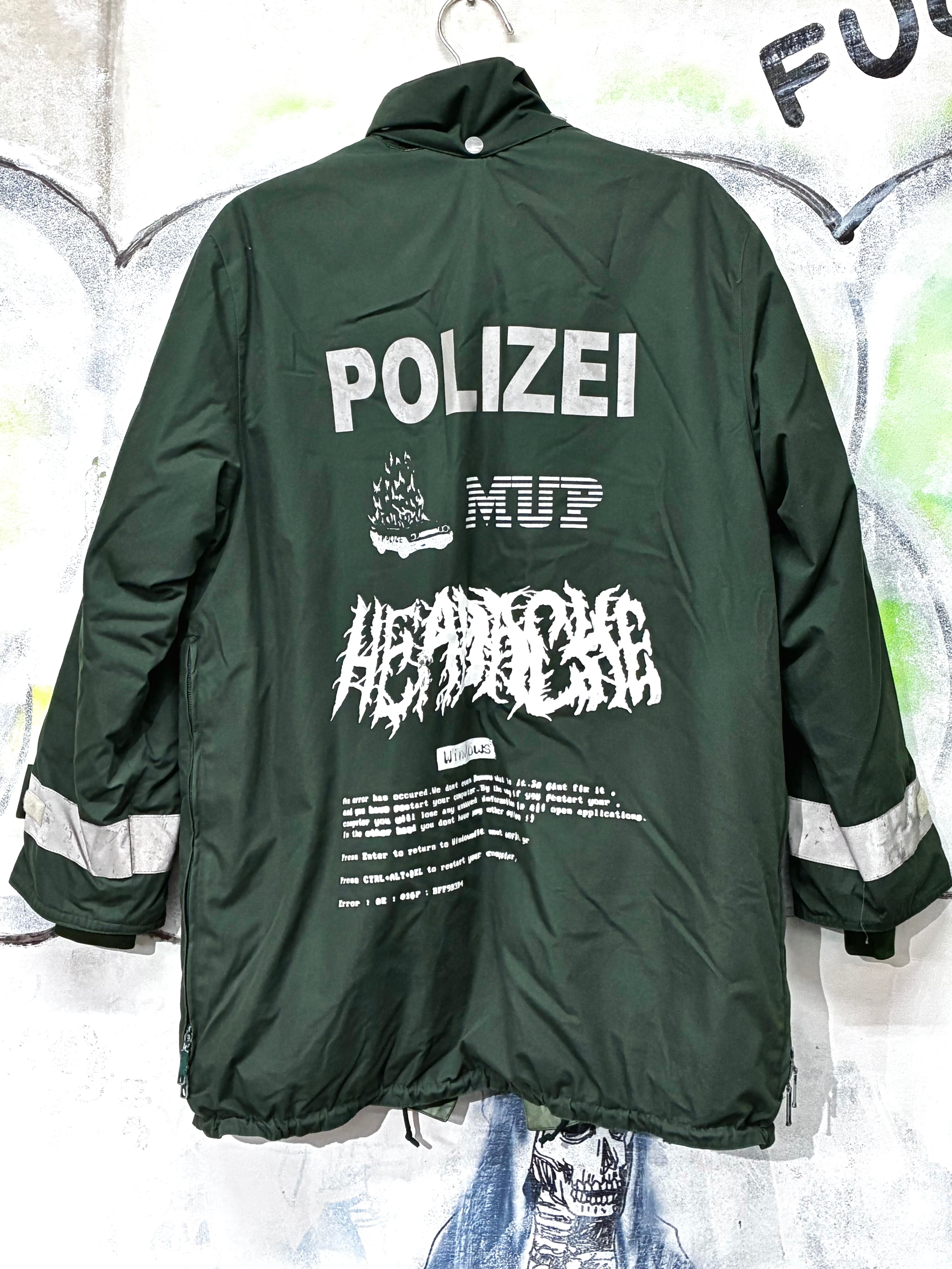 古着にシルク印刷でタトゥーを入れています。ドイツ警察 ゴアテックスコートです。