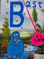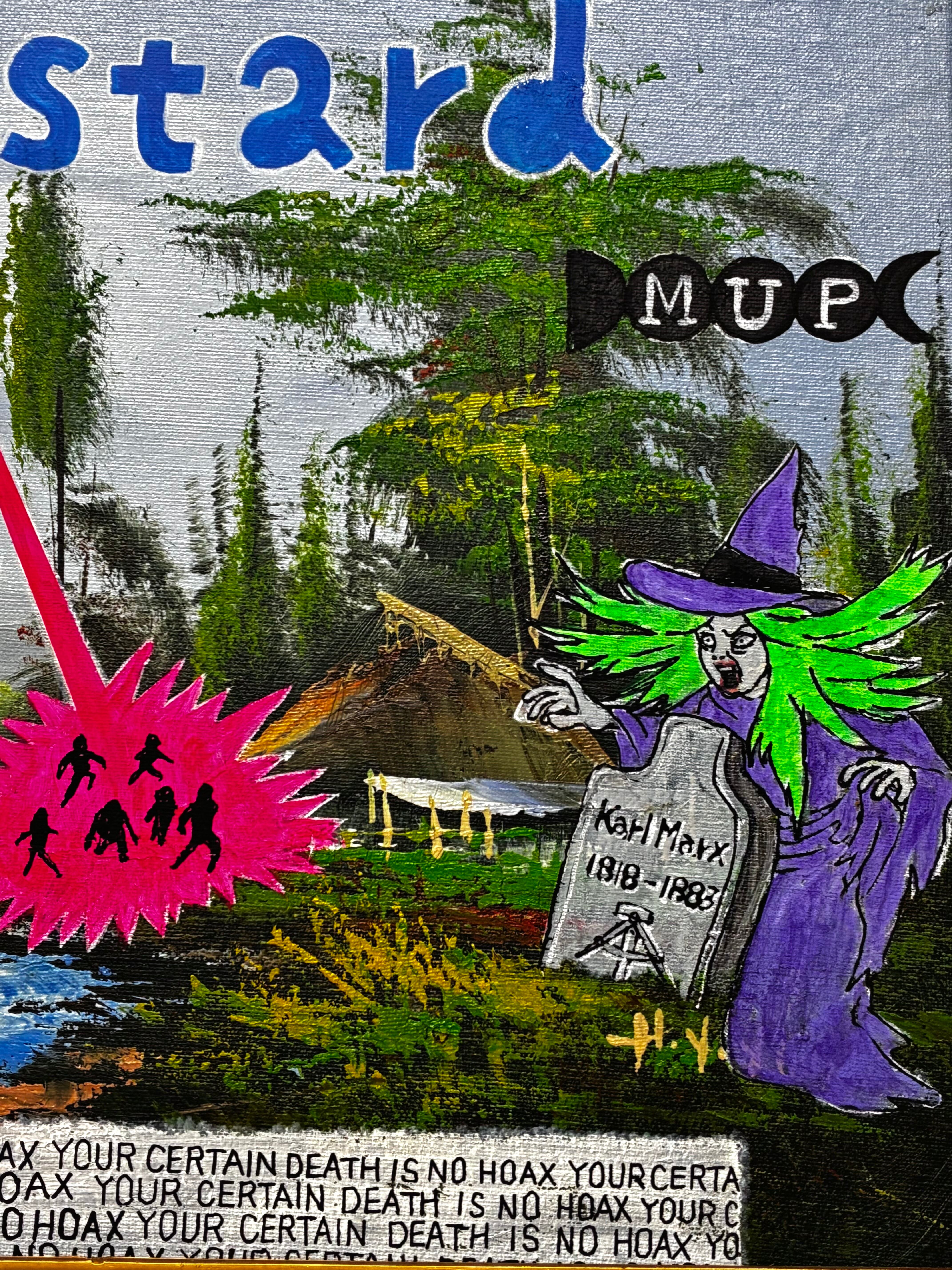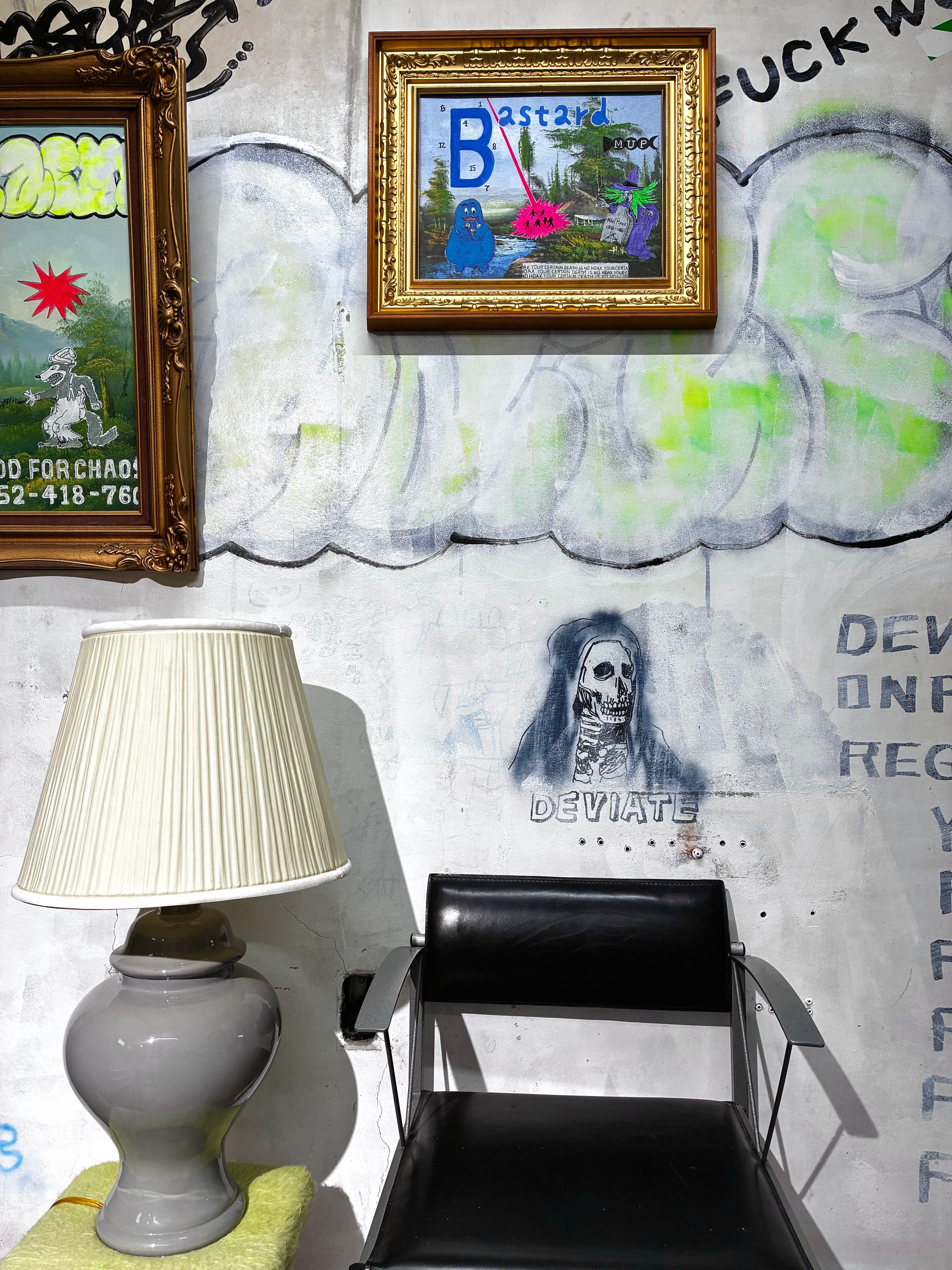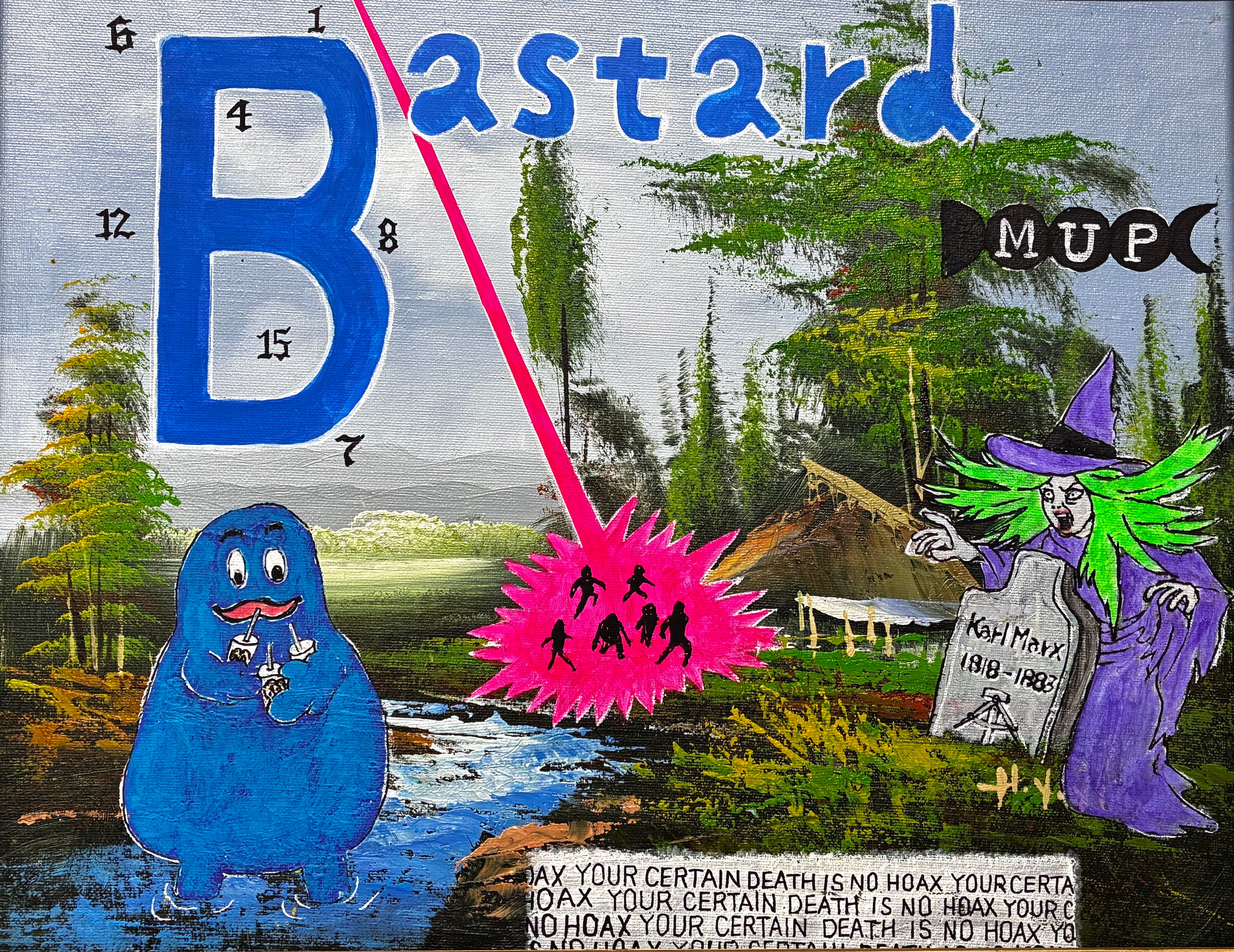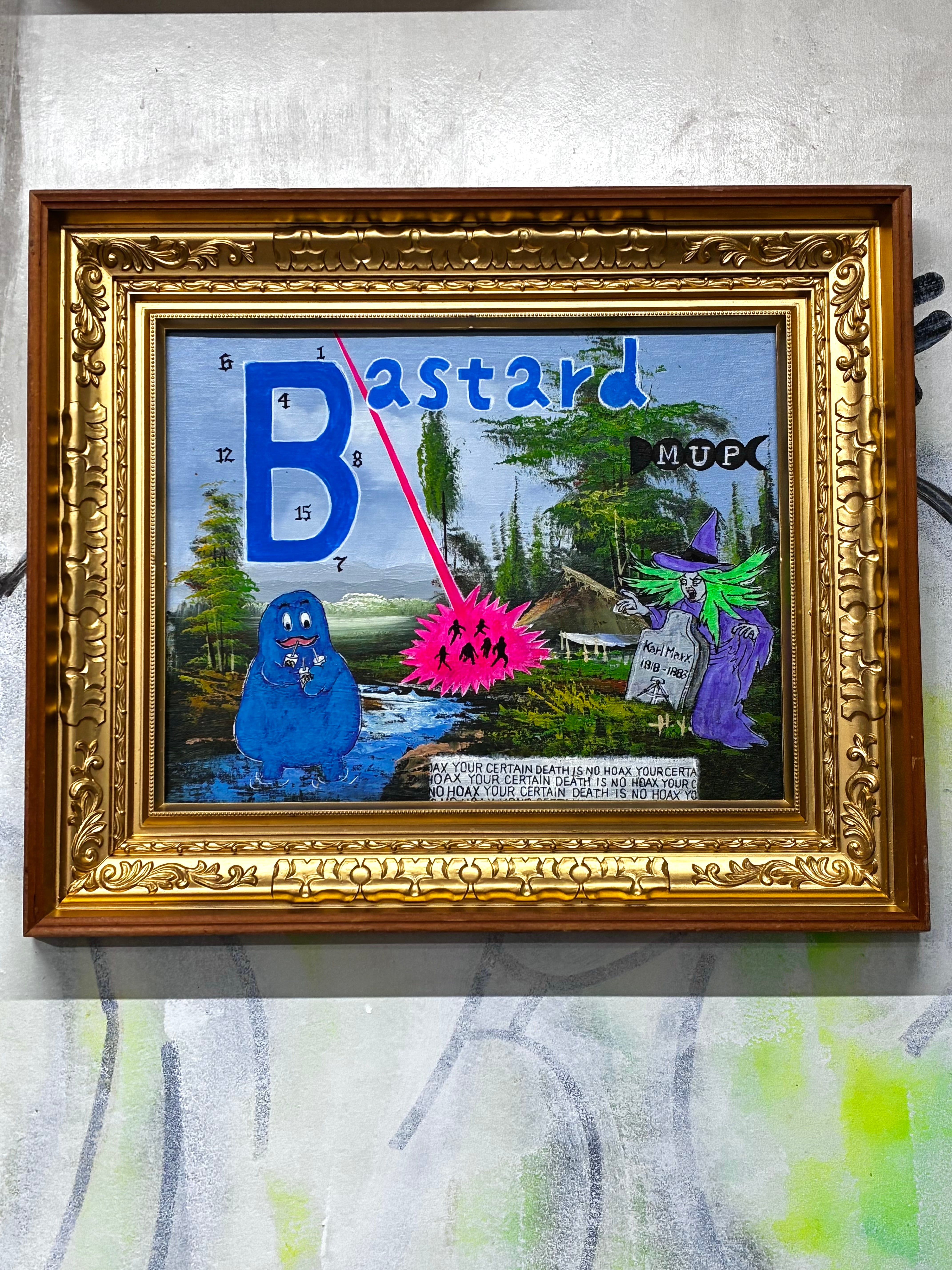 アート市場から見放されていた、古いありふれた風景画にポップをマッシュアップし、1点ものの”ありふれてない風景”に再構築する、価値のリサイクル作品。要するに、誰が描いたかわからない風景画の上からペイントし、私の作品にしています。